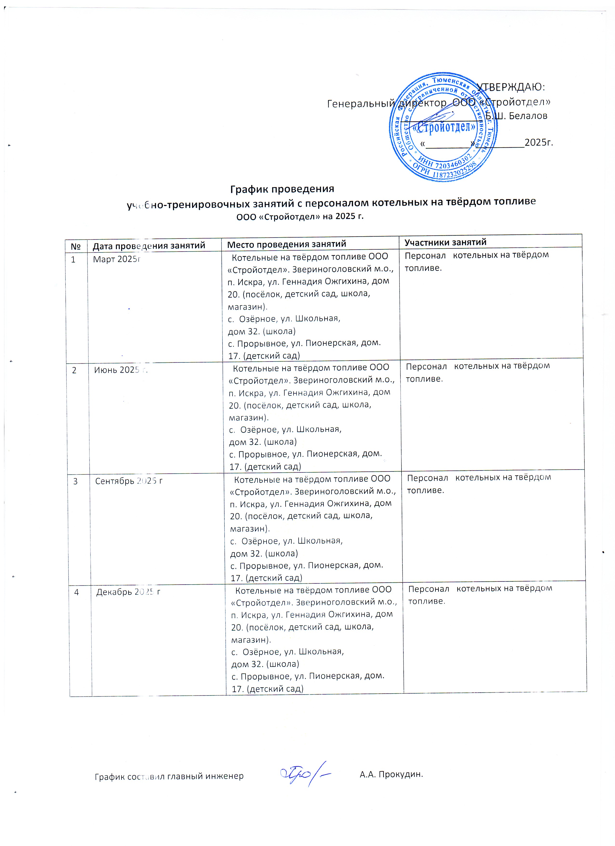 График проведения учебно-тренировочных занятий с персоналом на 2025 год